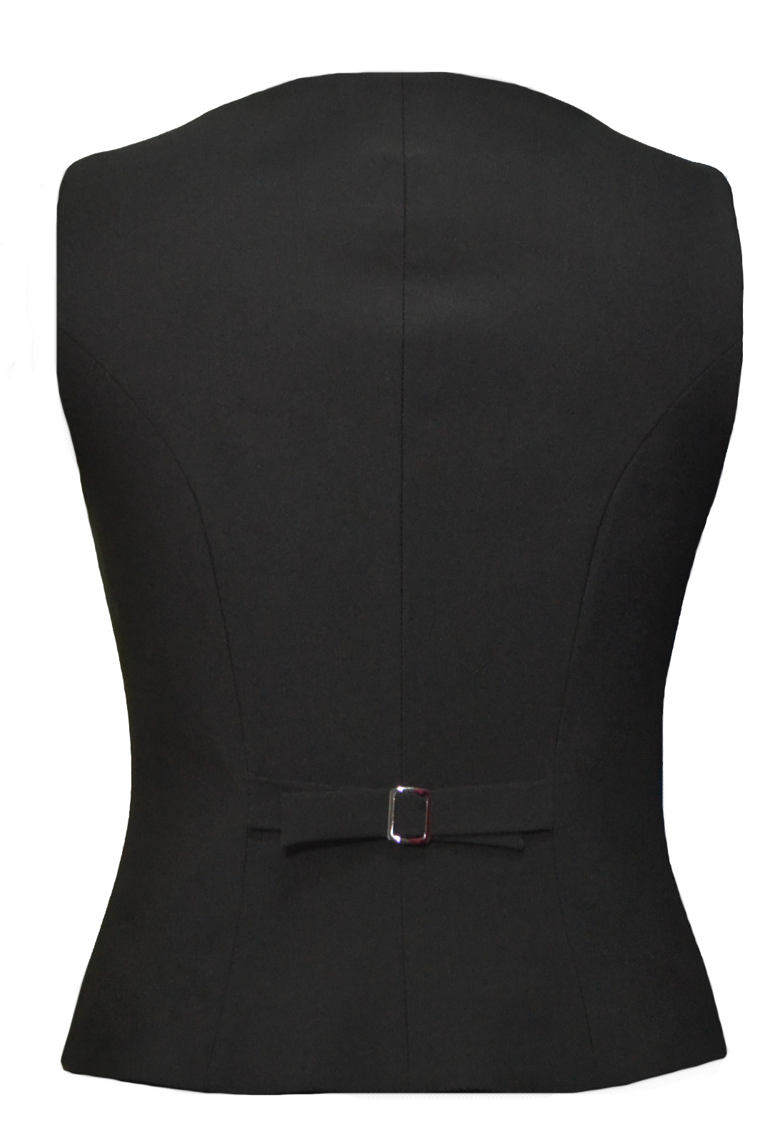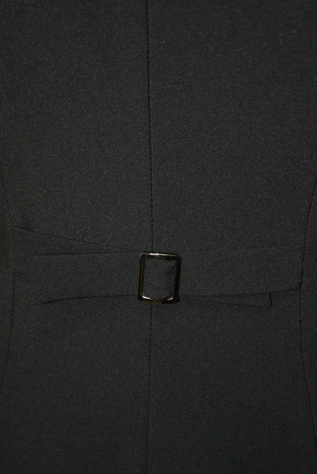 Спинка с рельефами из проймы и хлястиками с пряжкой, низ переда фигурный.
