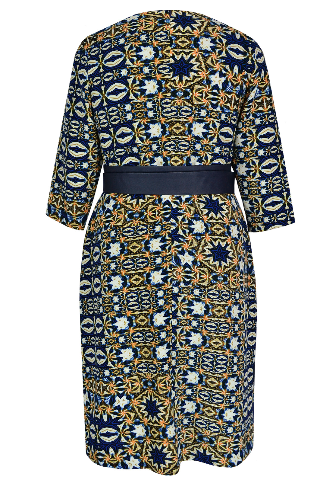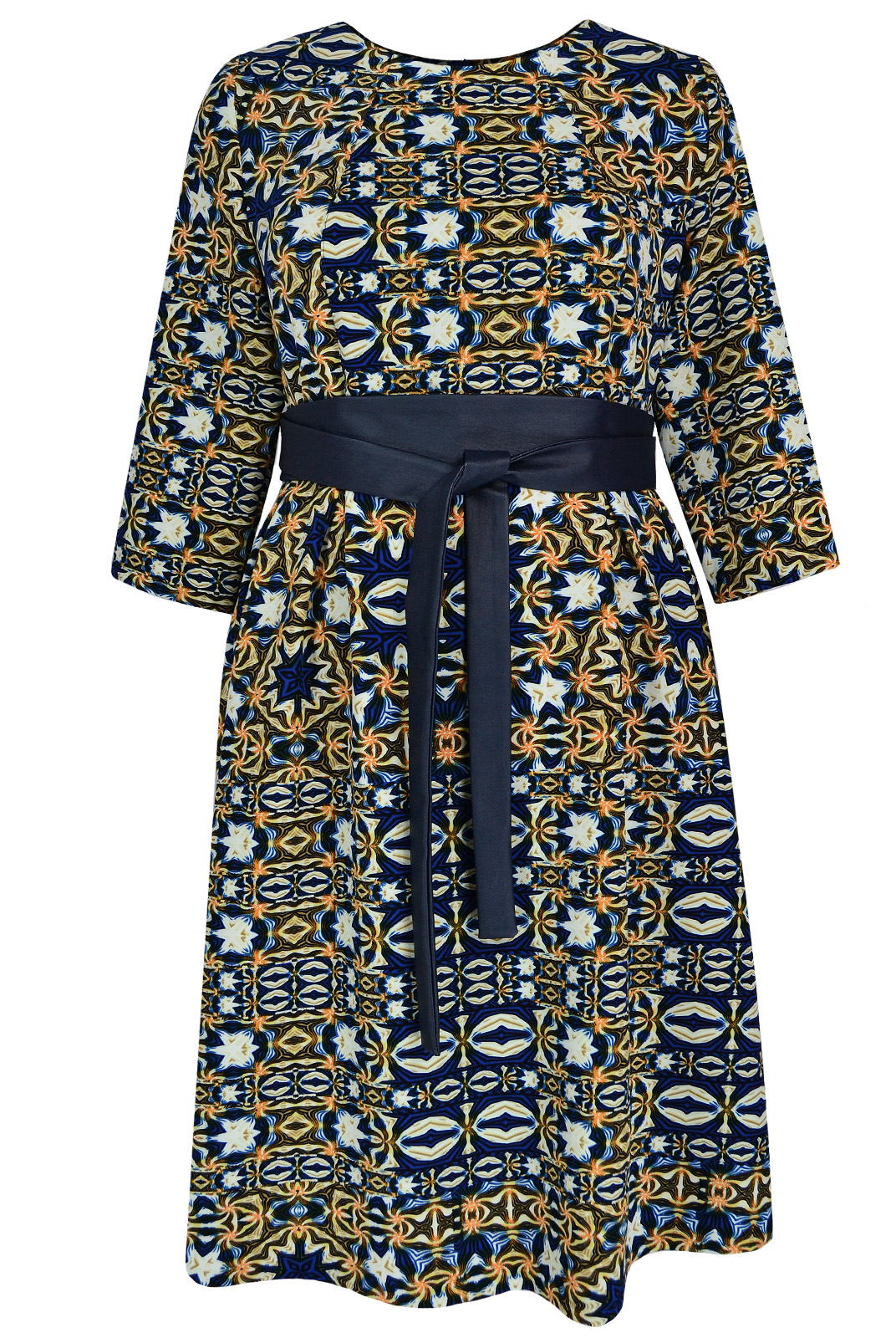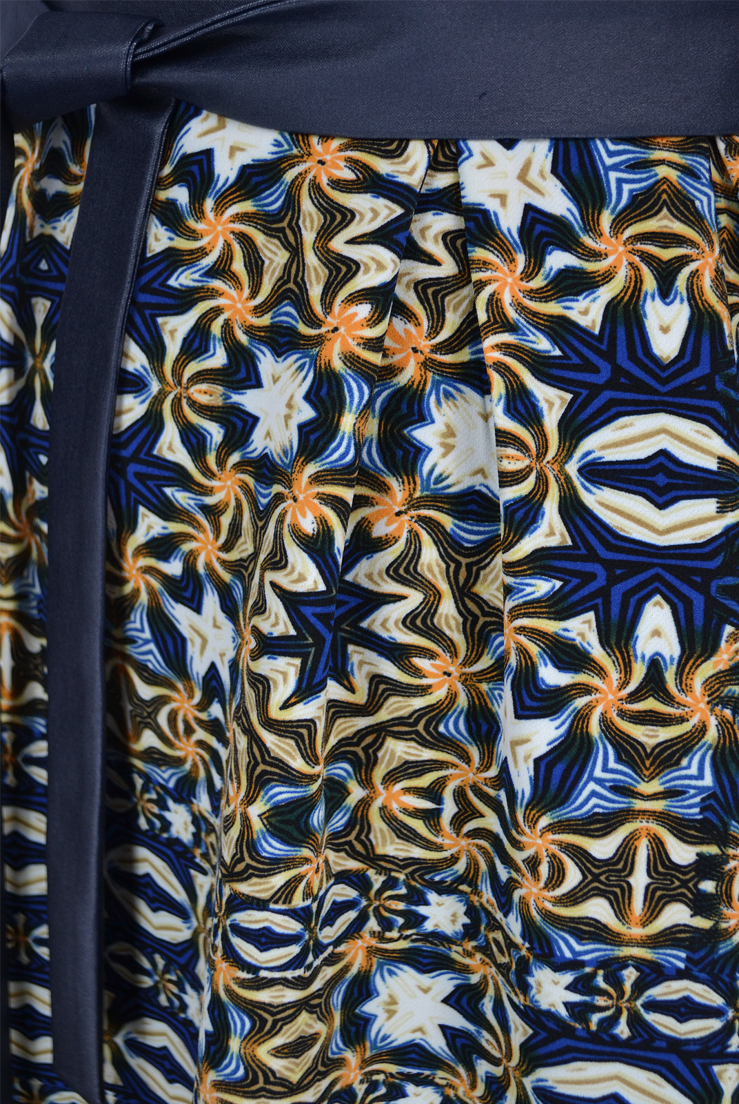 Пояс в два оборота из отделочной ткани. По талии на юбке переда четыре встречные складки .
