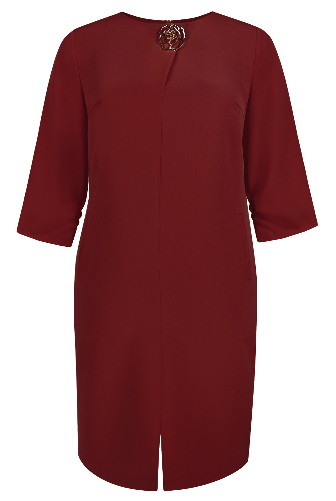 Платье простого покроя подойдет для деловой встречи, а если добавить брошь для праздничного вечера. Прямой силуэт платья отлично скроет недостатки фигуры.