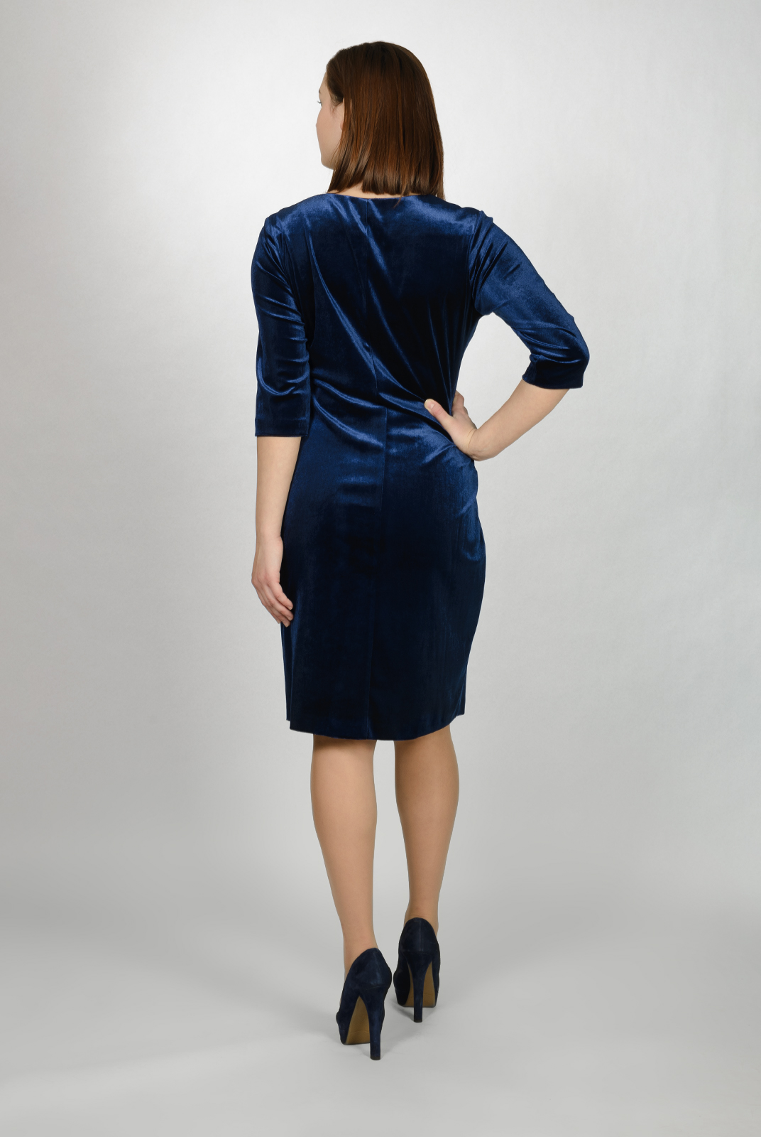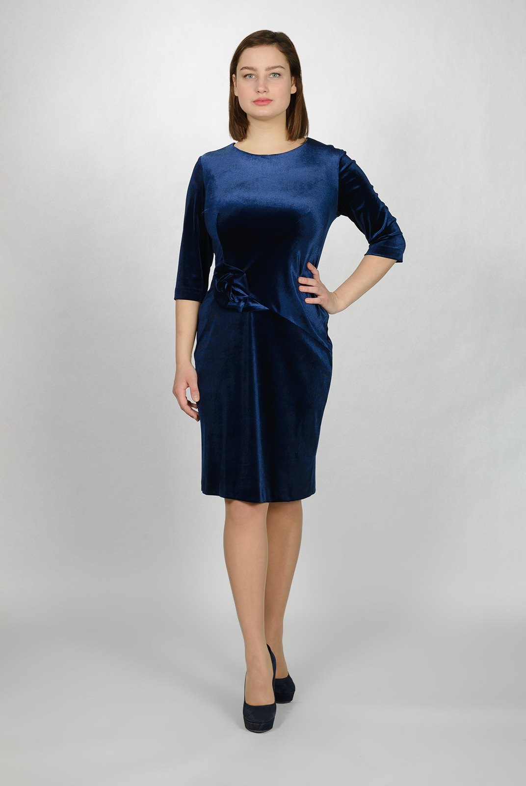 Платье хорошо подчеркивает фигуру, а декоративный элемент придает изделию изюминку. Отличное решение для торжественного мероприятия.