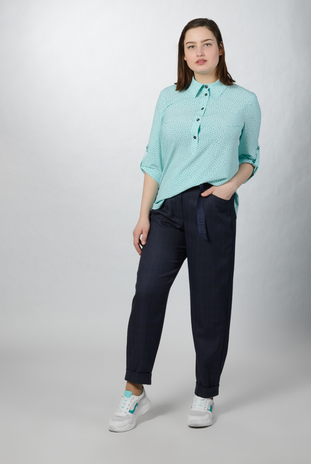 Блузка с рубашечным воротником и планкой до середины переда очень актуальна в нынешнем сезоне.