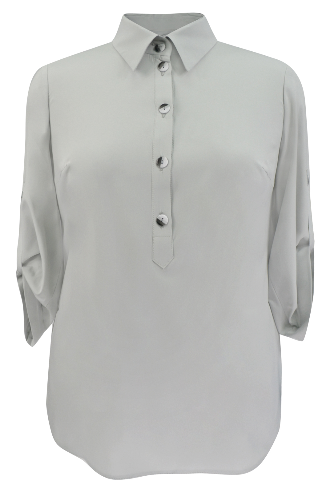 Блузка с рубашечным воротником и планкой до середины переда очень актуальна в нынешнем сезоне. Она подойдет как для полных женщин, так и для худых т. к. силуэт прямой.