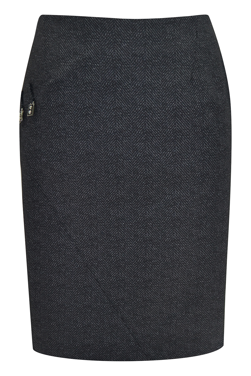 Юбка прилегающего силуэта, зауженная к низу. В ассиметричный подрез вставлены декоративные детали. Юбка отлично впишется в Ваш гардероб.
