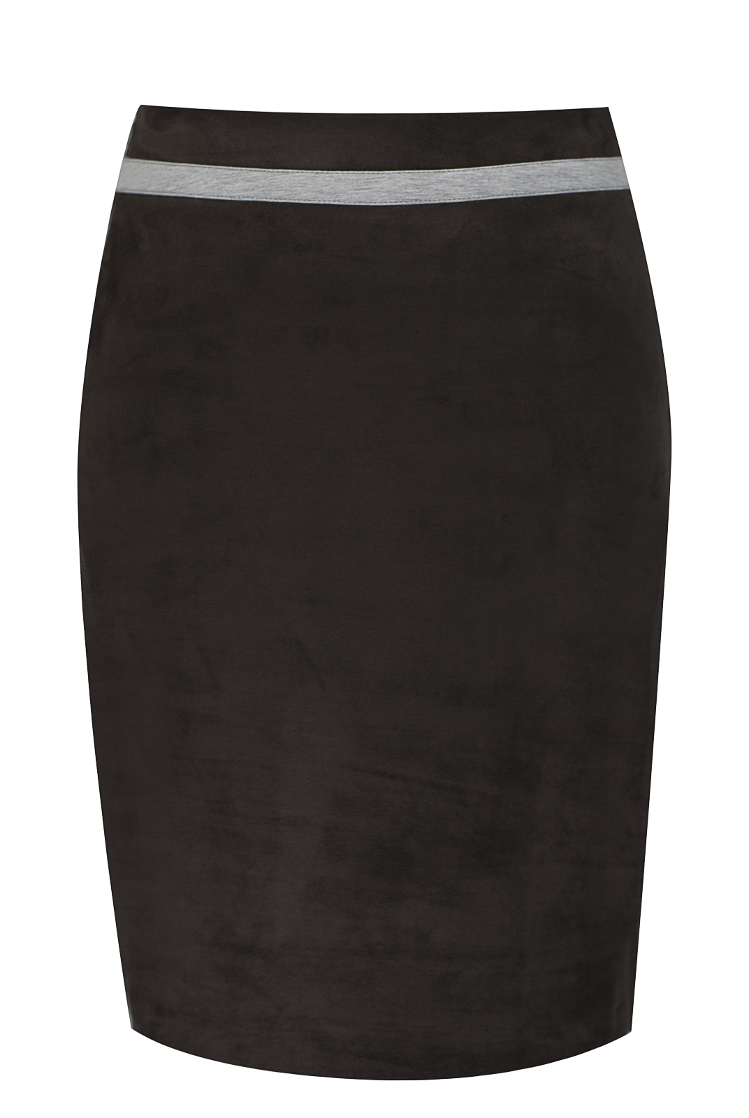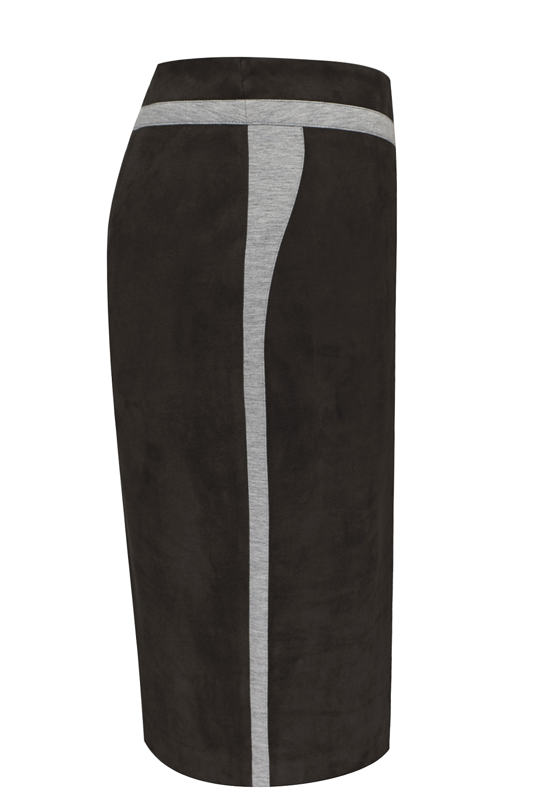 Юбка с лампасами и декоративными элементами классического кроя средней длины.