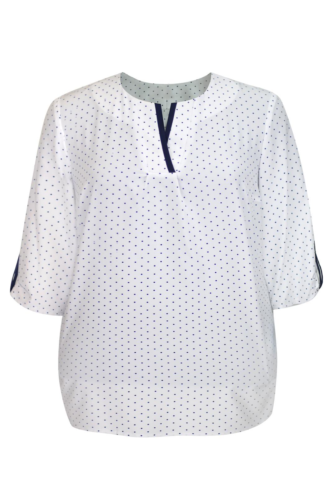 Стильная блузка с контрастной отделкой на вороте и рукавах.
