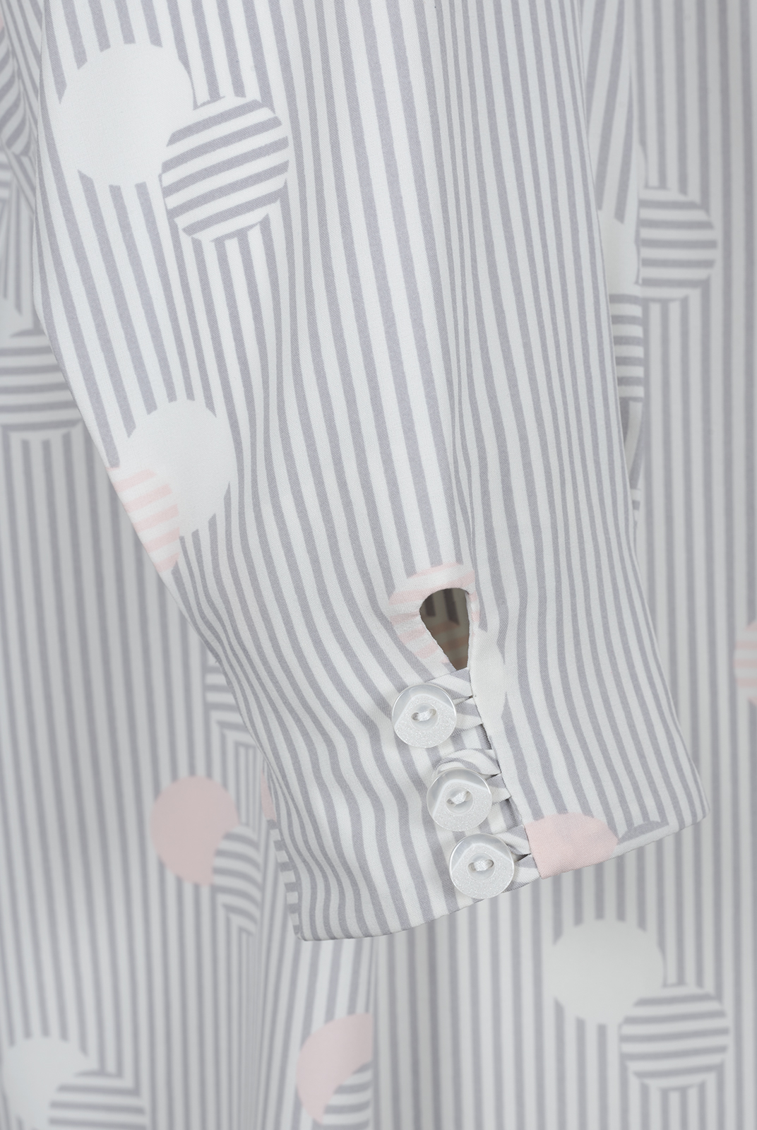 Покрой рукава: втачной одношовный с складками по низу и застежкой на навесные петли и пуговицы