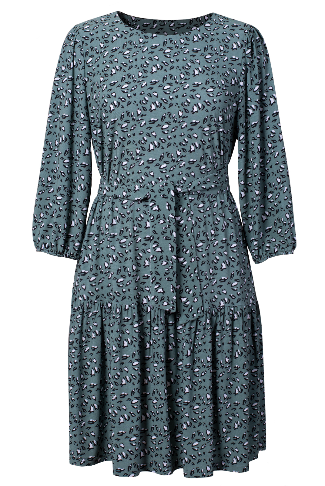 Притачной расклешеный волан на уровне бедер. Съемный пояс,