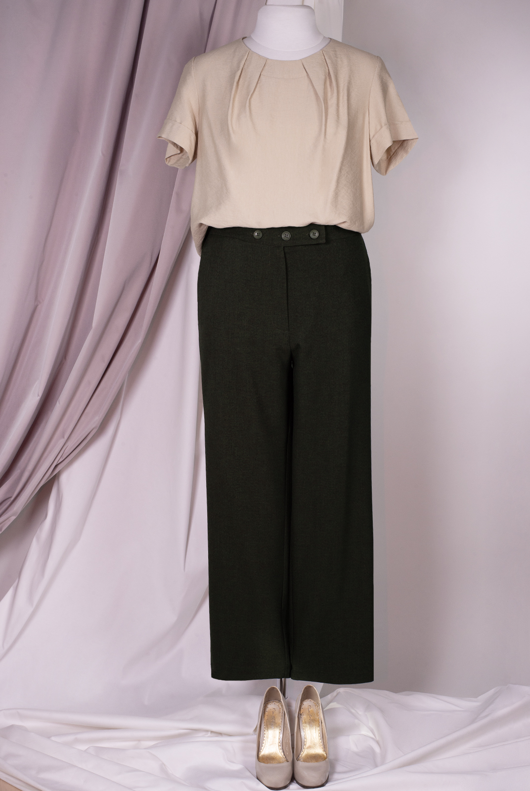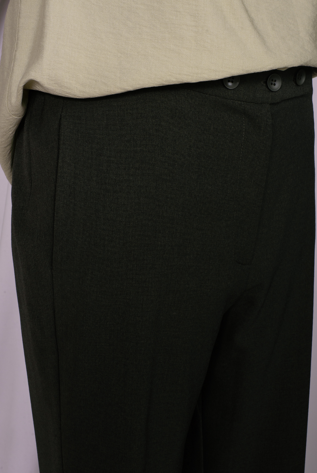 Пояс: притачной, по бокам на резине, спереди застежка на три петли и пуговицы