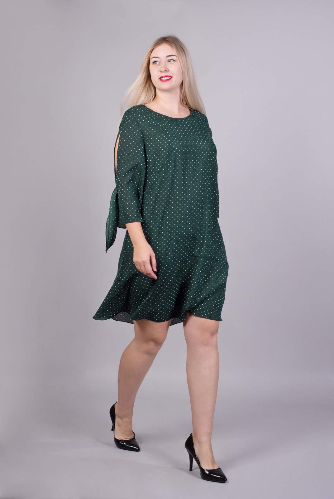 Оригинальный крой позволяет подчеркнуть женственный силуэт и скрыть лишние сантиметры в области талии. Элегантная модель для Вашего праздника.