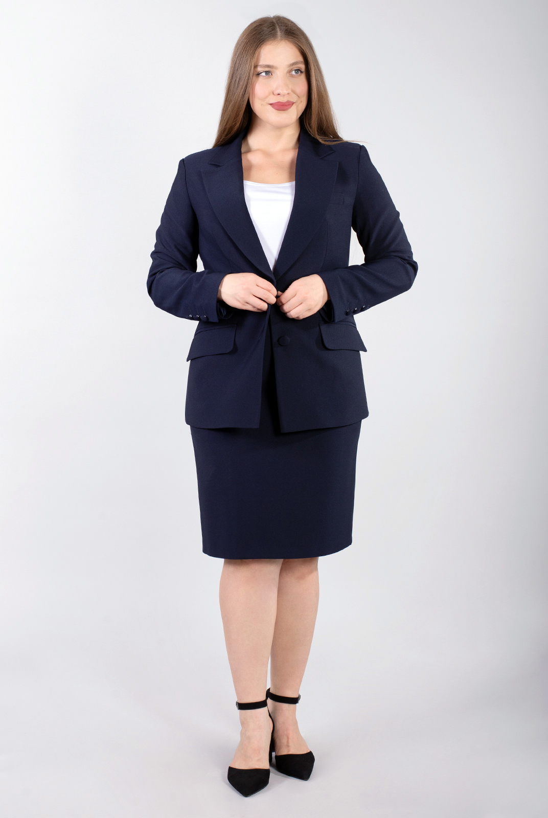 Прямая юбка - важная составляющая практически любого женского гардероба из разряда: на все случаи жизни. Длина чуть выше колена позволяет выглядеть уместно не только в офисе, но и за его пределами. Шлица вместо разреза придает модели динамичную спортивную ноту. В качестве функционального элемента предусмотрены карманы.