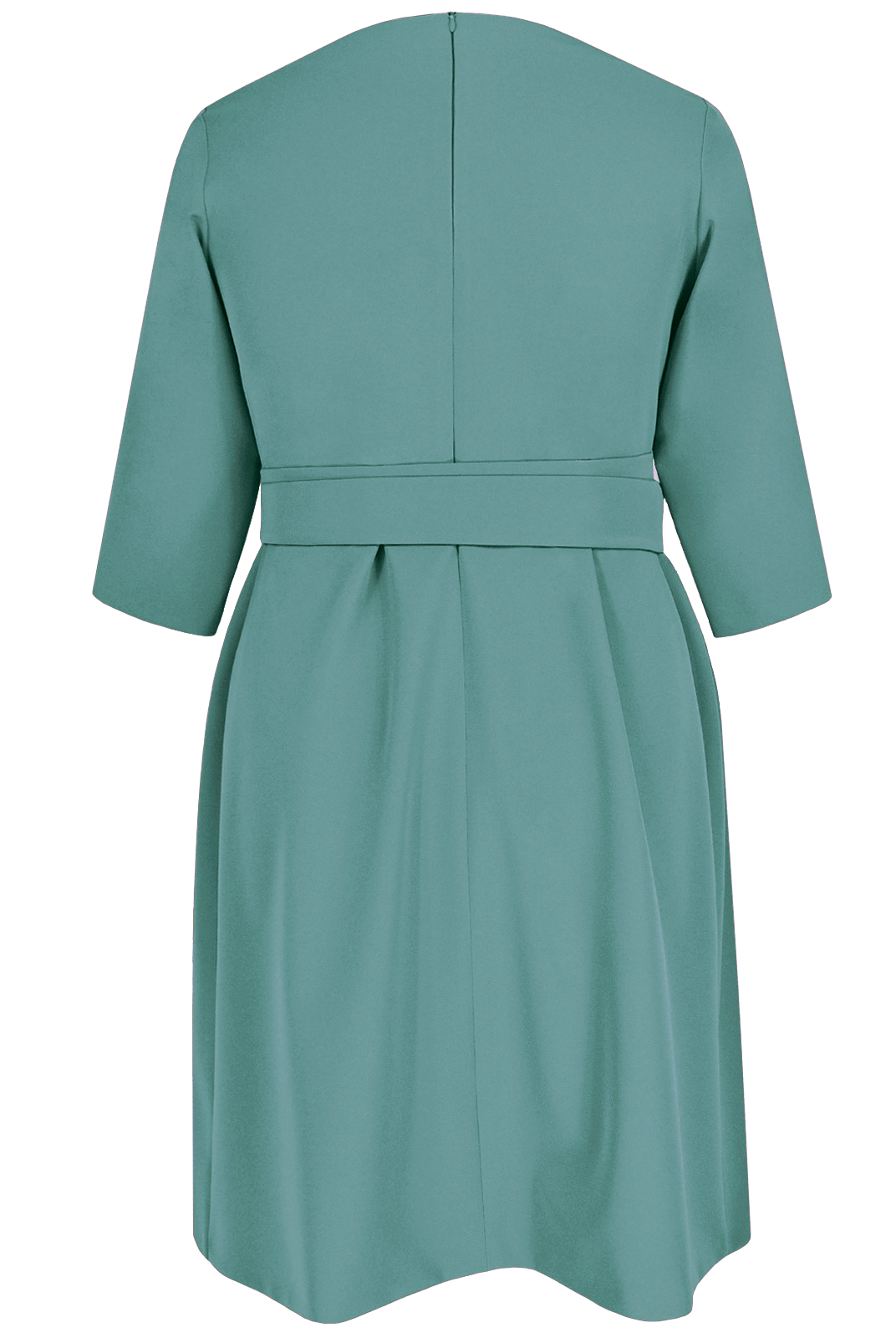 Пояс в два оборота из отделочной ткани. По талии на юбке переда четыре встречные складки .
