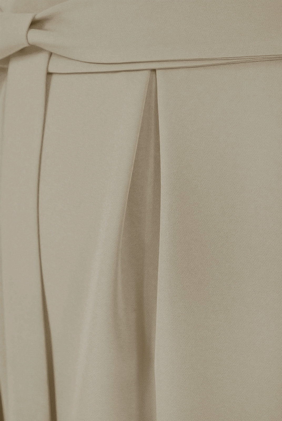 Пояс в два оборота из отделочной ткани. По талии на юбке переда четыре встречные складки .
