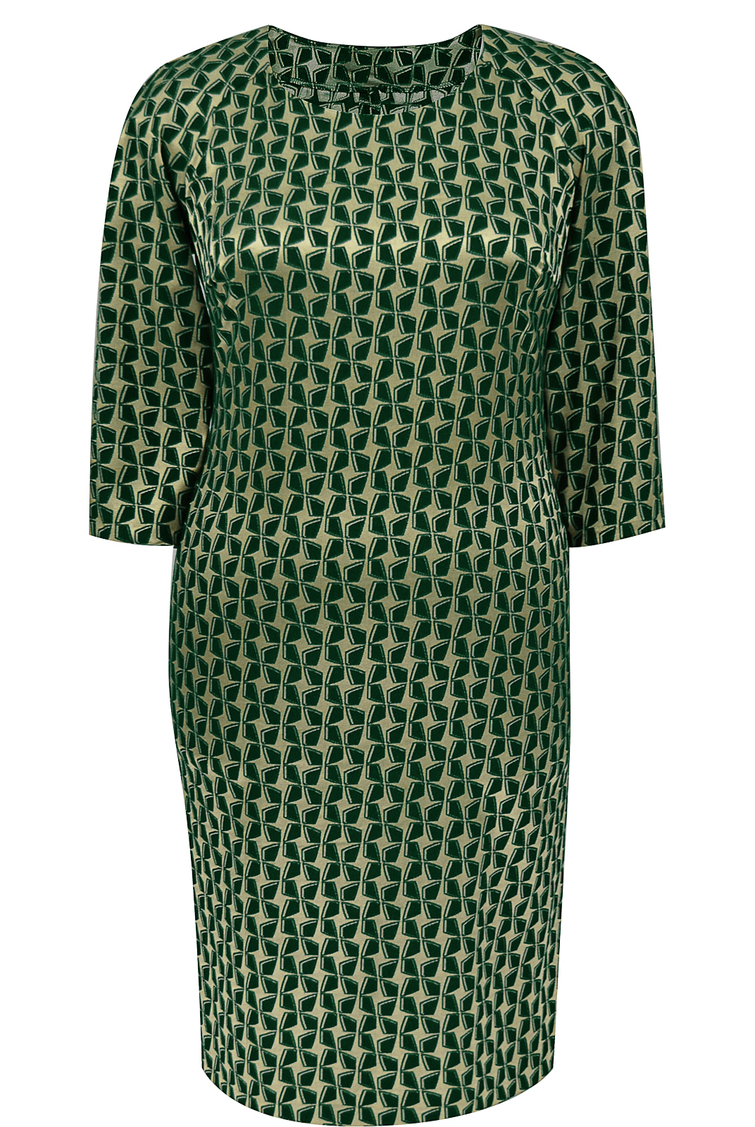 Платье с набивным рисунком классического покроя реглан выгодно подчеркивает достоинства Вашей фигуры.253Зел05