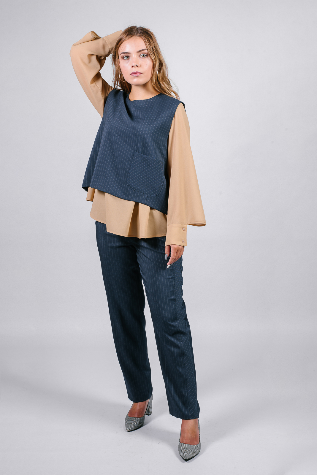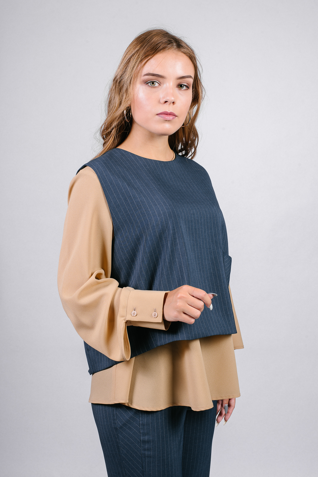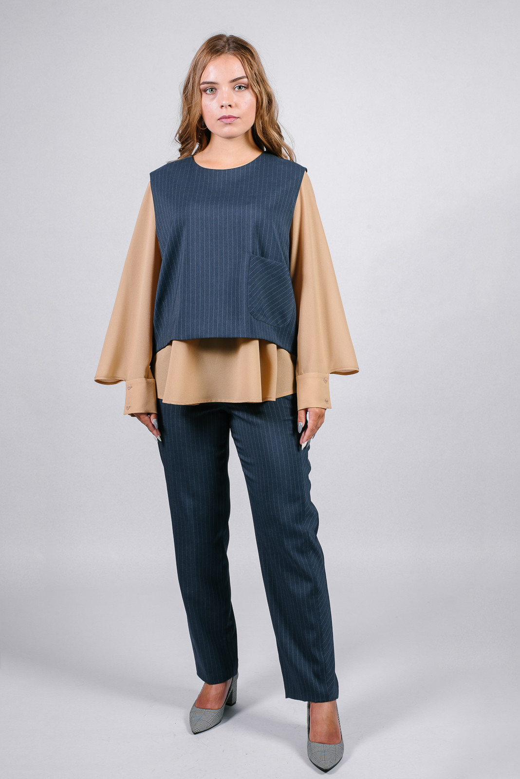 Элегантные брюки полуприлегающего силуэта. Модель, зауженная книзу, выполнена из костюмной ткани в вертикальную полоску.