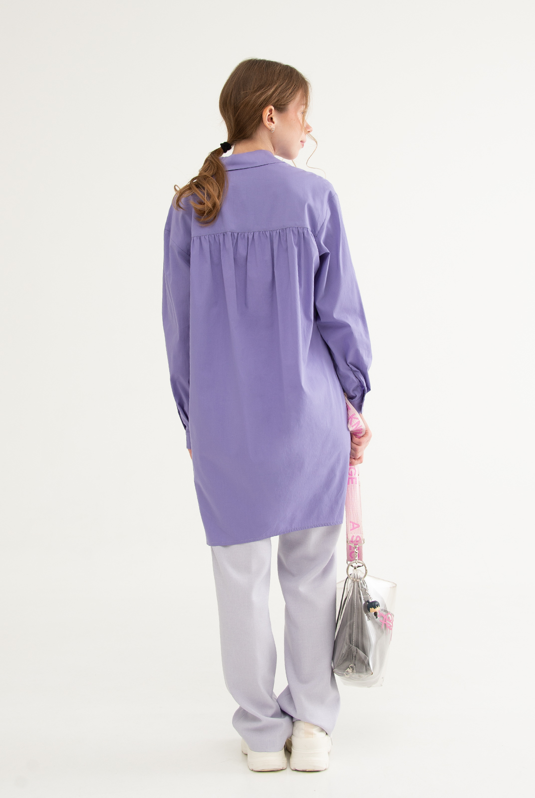 Строгая рубашка с воротником-стойкой и кокеткой создана по принципу классической мужской сорочки. Нагрудные накладные карманы делают данную модель абсолютно самодостаточной. Она может пополнить даже спортивный гардероб, заменив ветровку в комплекте с джинсами и футболкой.