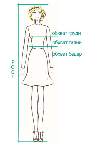 3. Обхват талии - измеряется, не затягивая, вокруг талии, на уровне локтя.